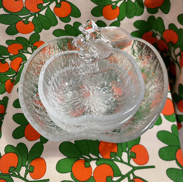 set van 3 appel-schalen in dik reliëf glas