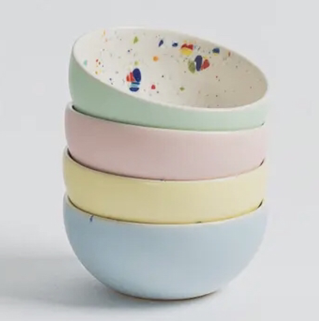 Set van 4 kommetjes. Mat pastel glazuur aan de buitenkant en glanzend Confetti wit vanbinnen.