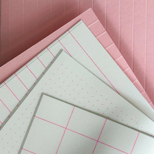 Inhoud: elk 16 pagina's gelinieerd, gestippeld en groot geruit in neonroze 1