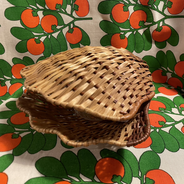 Rotan schelp mandje, te gebruiken om juwelen of je lievelingsspullen in op te bergen.