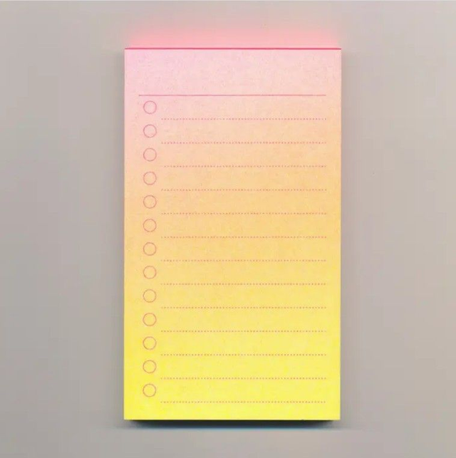 Boodschappen doen, het konijn voeren of oma bellen? Met dit praktische afscheurblok is structuur dubbel zo leuk. Gebonden met afscheurlijm in neonroze. Milieuvriendelijke risografieprint op 120 g sterk, fijn natuurpapier 70 vellen, 7,4 cm x 12,8 cm