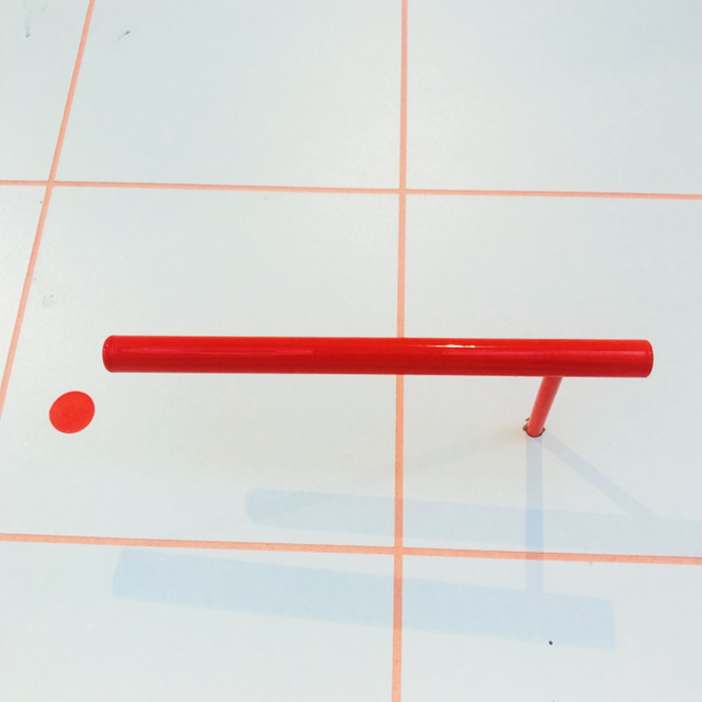 Deze toiletrolhouder heeft een zeer simpel ontwerp. Het is eigenlijk een gekleurde metalen pin op een schroef, net als de lijnhaken en het is ook